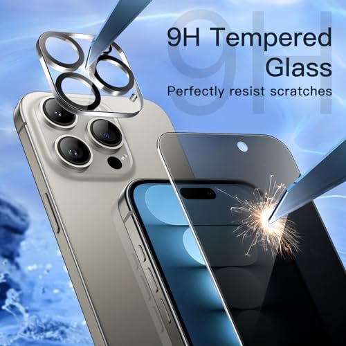 iPhone15ProMax 保護フィルム プライバシー保護 フィルム+カメラレンズフィルム 覗き見防止 強化ガラスフィルム 6.7インチ用(15 Pro Max) [ガイド枠付き 2枚+2枚セット]