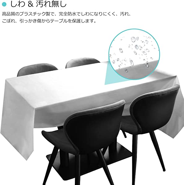 しわ無し:高品質のプラスチック製、完全防水、しわになりにくいため、テーブルに汚れ、こぼれ、傷などに対する優れた保護を提供する