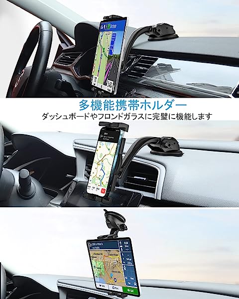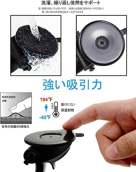 【簡単片手操作】ツールを必要とせずに ダッシュボードにサクションマウントを簡単に取り付けることができます。ほとんどの車 ピックアップトラック SUV トラック タクシーに最適です。吸盤ベースが汚れている場合は 単に洗って風乾させてから 同じ場所または新しい場所に再度固定します。以前と同じ強力な吸引力が得られます。