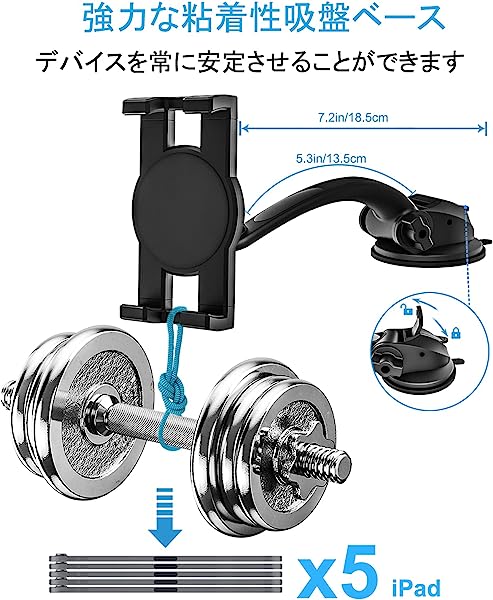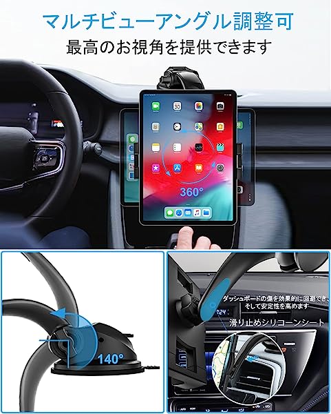 【2023新登場】 車載 タブレットホルダー ipad ホルダー 運転席 タブレットスタンド 車 スマホホルダー 4.7-12.3インチ 超強力粘着ゲル吸盤/取り付け簡単 360度回転 自由調節/日本語説明書付き/プレゼント/全機種対応 iPad Pro 9.7 11 インチ/iPad Air Mini 5 4 3 2/iPhone/Samsung Tab/Sony など