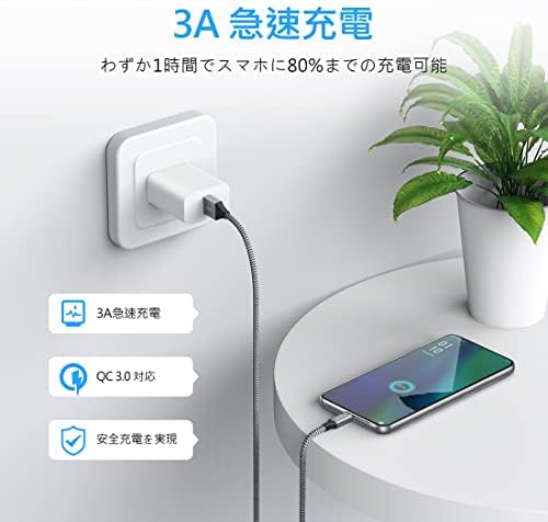 【急速充電とデーター転送】最大3A電流(Quick charge 3.0対応)の出力により、安定してフルスピードで充電をご提供しております。USB 2.0で高速データ転送(最大480Mb/s)が可能でき、映画、ファイル、曲などを素早く転送し、お客様の貴重な時間が大幅に節約できます。