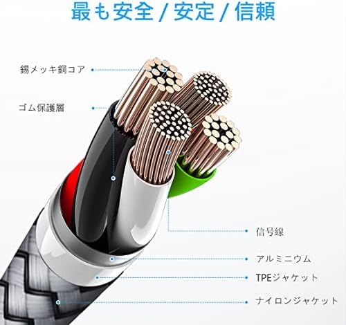 高品質のケーブル 高純度銅が導体に採用されていて、アルミ箔の信号シールド層でより速く、3Aまでの急速充電が可能です 。