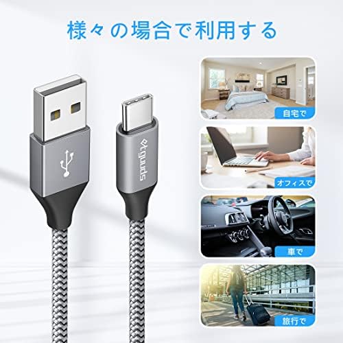 【50cm 2本】 USB Type C ケーブル 急速充電 QC3.0 タイプc ケーブル ショート 高速データ転送 cタイプ 50cm 高耐久ナイロン FireHD 8 10 Plus FireMax11 Galaxy S10 S9 A20 A21 Note Xperia Xiaomi Switch その他Android USB-C機器対応