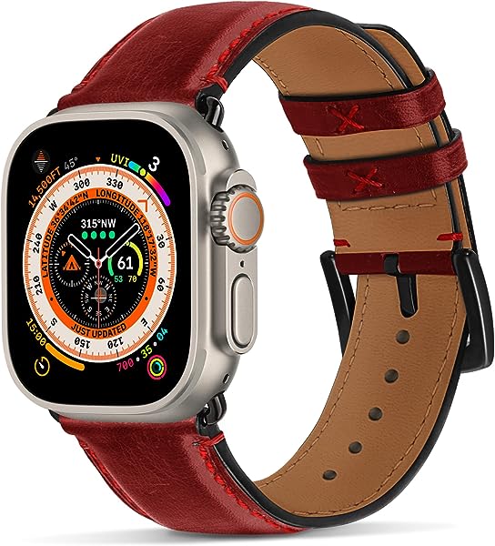 アップルウォッチ 交換 バンド 交換ベルト レザー apple watch iWatch 革 appleウォッチ 皮ベルト 45mm 44mm 42mm 41mm 40mm 38mm腕 時計バンド 本革 アップルウォッチ 8 7 6 SE 5 4 3 2 1 ビジネス 交換用 レディース メンズ ユニセックス 男女兼用 プレゼント(38mm 40mm 41mm レッド+ブラックバックル)