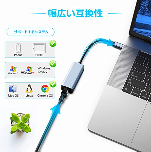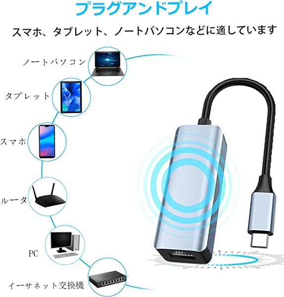 イーサネットアダプタ 有線LANアダプタ lanポートlan 変換アダプタ lanケーブル 10/100/1000Mbpsネットワーク速度LANケーブル 5Gbps高速転送 (TYPE c端子)