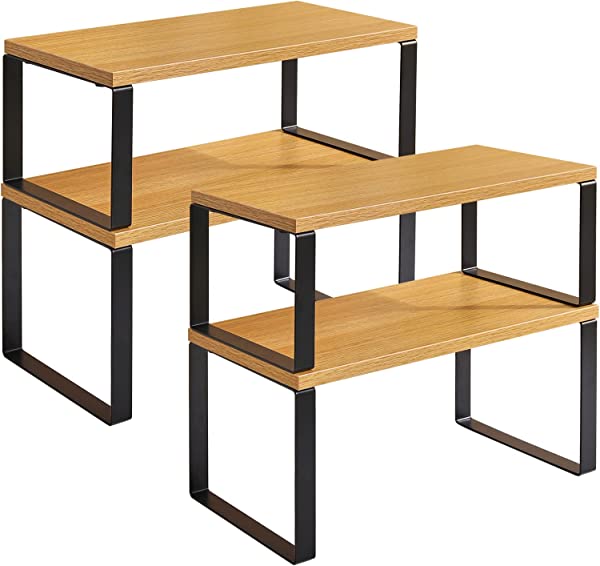 キッチンラック 4個入 調味料ラック スパイスラック カウンター棚 積み上げ可能 拡張可能 キャビネット収納ケース 水槽 化粧品 缶 カップ 浴室 台所 卓上 大容量 木の色