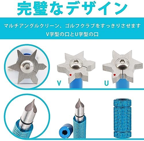 ゴルフ クリーニング ツール セット ゴルフクラブ ブラシと溝 掃除 器具 ケースハンドル一体化 ウェッジ U&V 角 溝用 クラブ掃除 多様途 収納便利