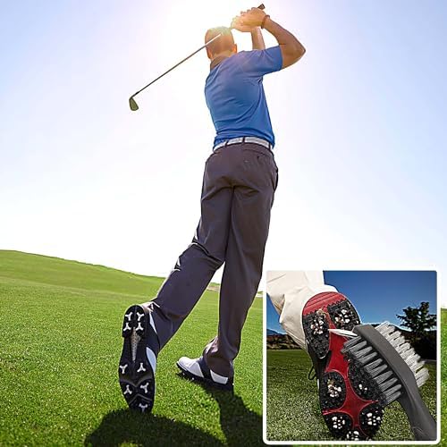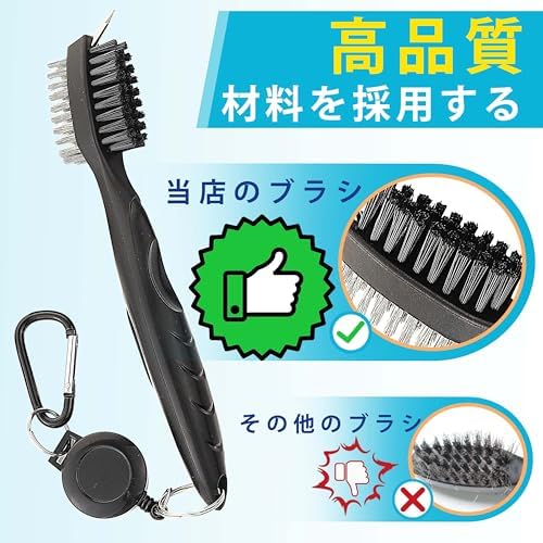 【効率的なクリーニングブラシ】:2面、ナイロン毛と鋼線毛が特徴のブラシは、フェアウェイのクリーニングアイアンに適用でき、スパイクを使用してゴルフシューズの細部や深さをクリーニングできます。