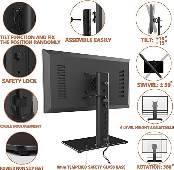 シングル LCD モニタースタンド 独立型スタンドスタンド 13 -32 画面用 回転式 高さ調節可能 回転