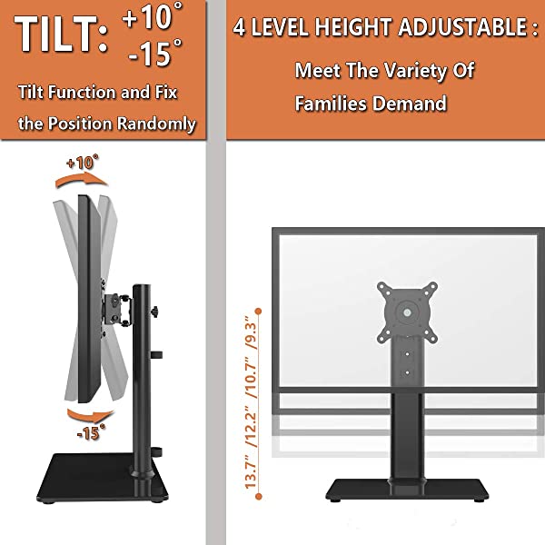 仕様 モニター画面サイズ:13 32 最大積載量:45KG 強化ベースの寸法:11.8 x 7.9 高さ調節:4段調節可能楕円形のチューブサイズ:1.58 x 3.15 傾斜機能:-15°+ 10°