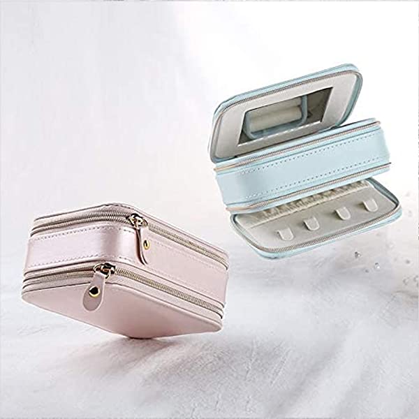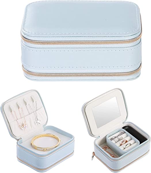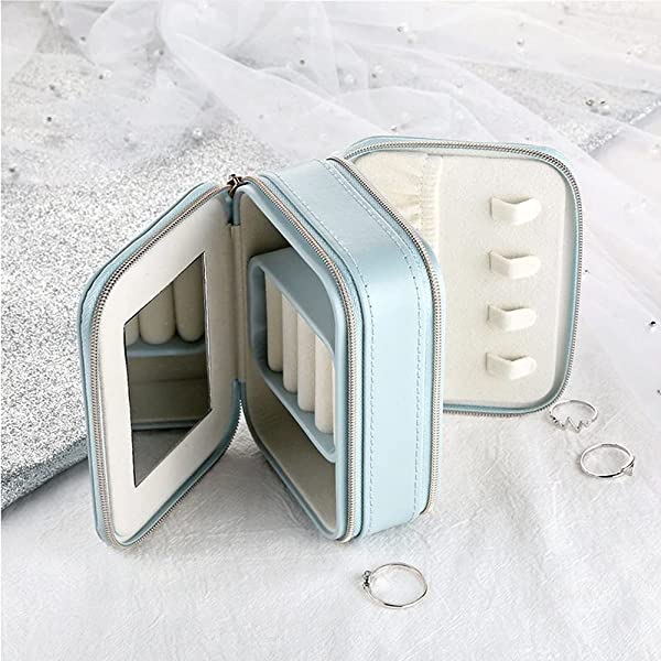 ジュエリーボックス アクセサリーケース 携帯用 ミニ 旅行用 鏡付き ジュエリーケース 持ち運び アクセサリー収納 ピアス 収納 トラベル ネックレス 指輪置き ジュエリーバッグ 贈り物 可愛い (ライトブルー)