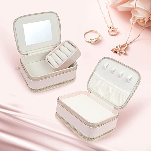 【デザイン】:可愛い色とおしゃれな見た目は女の子に人気。内部のデザインも巧妙で、収納スペースを最大限に実現すると同時に、おしゃれ感を保っている。便利な鏡付きでアクセサリーを付ける時にその場でチェックできるのも嬉しい。