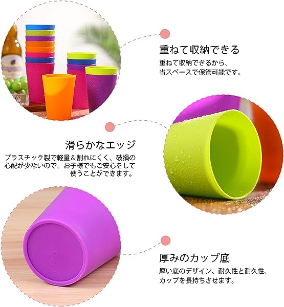 【品質】:子供と家族全員のために設計され、耐久性のある最高品質のプラスチックでできており、握りやすく、滑らかなエッジで、スペースを節約するために積み重ねることができ、キッチンに最適なキッズカップです。