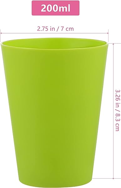 【商品仕様】 色:ランダム(色指定ができません)。素材:プラスチック。サイズ:約 8.3x6.4x4.3cm。容量:200ml。パケージの内容:15×プラスチックカップ。毎日使用するのに最適な再利用可能な飲料カップです。