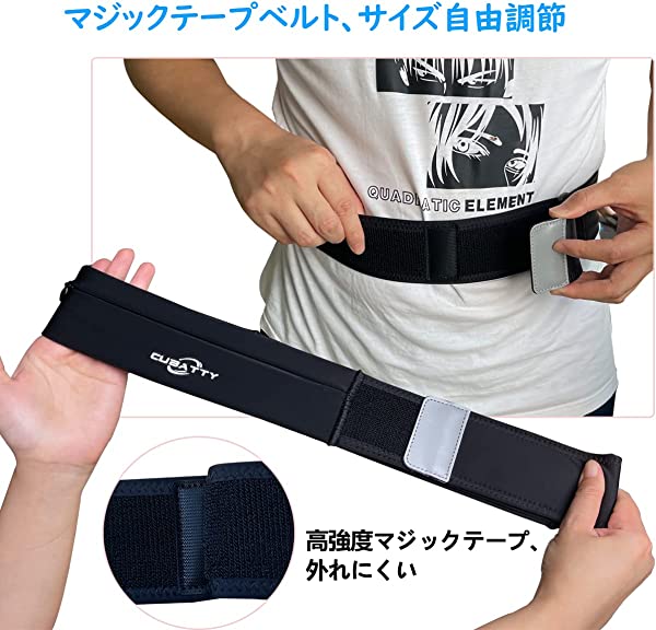 【揺れない・安定感良いランニングポーチ】高強度のテープベルトを採用、長時間走っても緩くしない、ぜひ試していただきたいです。ベルトの長さを細かく調整でき、二つサイズ用意(S:ウエスト60-85cm対応、L:ウエスト80-110cm対応)、体型を問わず男女兼用タイプです。
