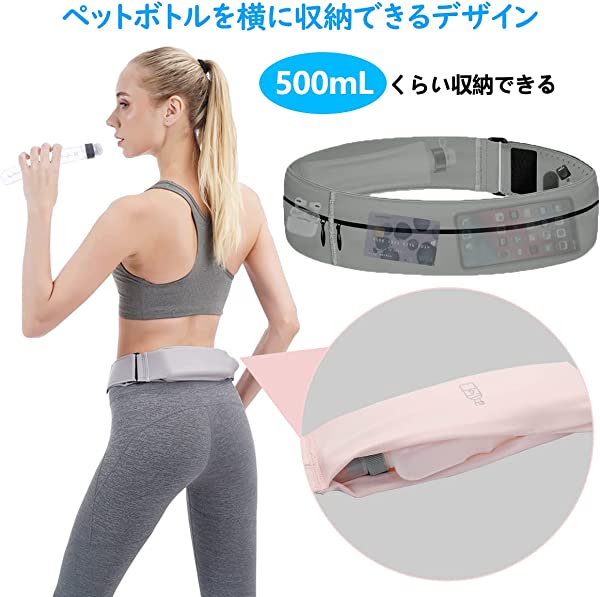 【ペットボトル収納できる】サイズ違うのポケット三つ付き、iPhone 13 Pro Maxなど7.2インチまでのスマホなら楽々収納、容量500mLくらいのペットボトル収納でき、もちろん鍵、カード、小銭、コイン複数枚も収納可能。