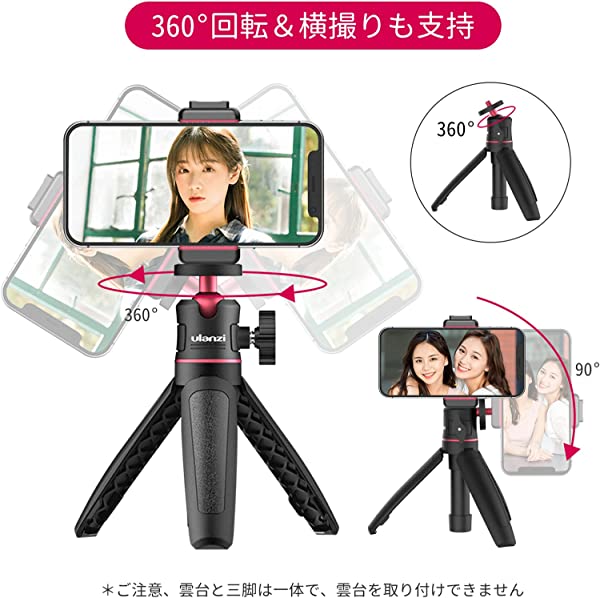 Ulanzi自撮り棒は同じ色のスマホクリップ付きからスマホの自撮り棒として使用可能。