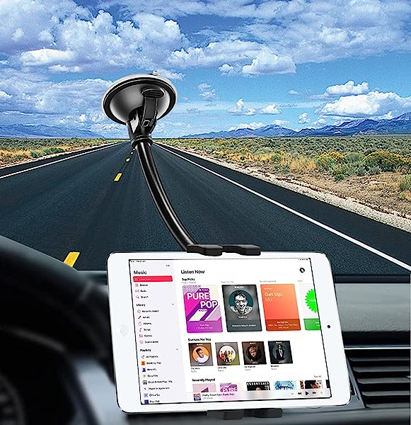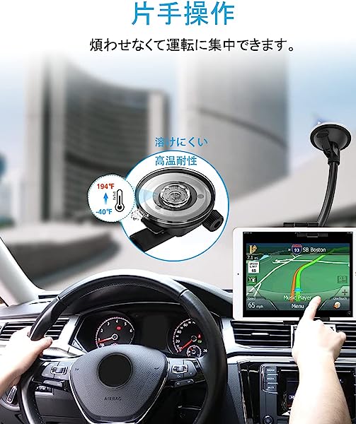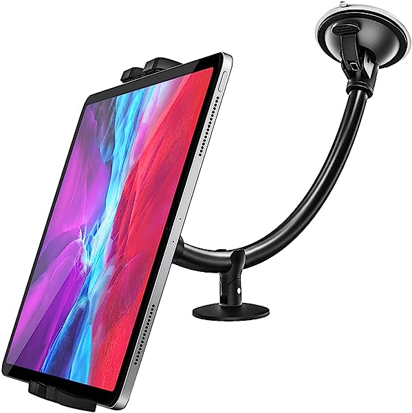 車載ホルダー タブレットホルダー フロントガラス 強力真空吸盤式タブレットスタンド タブレットアーム サクションカップマウントスマホスタンド 柔軟に曲げipad車載ホルダー 車ガラスとダッシュボードに適用 360度回転 日本語説明書付き タブレットとスマー ...