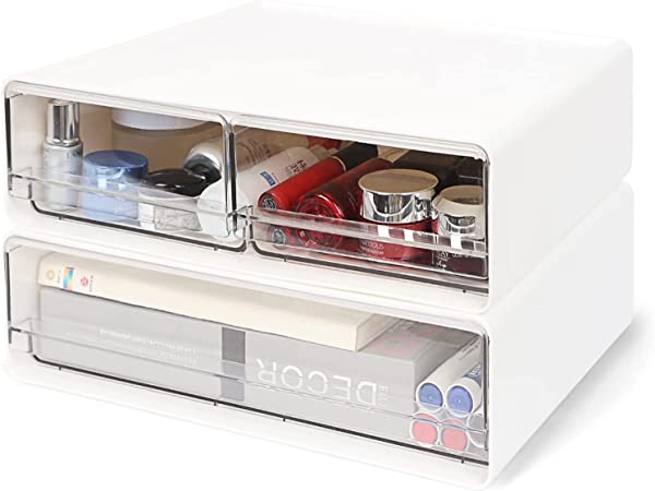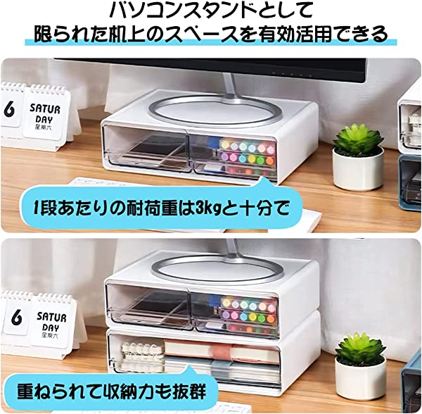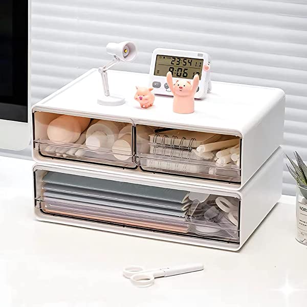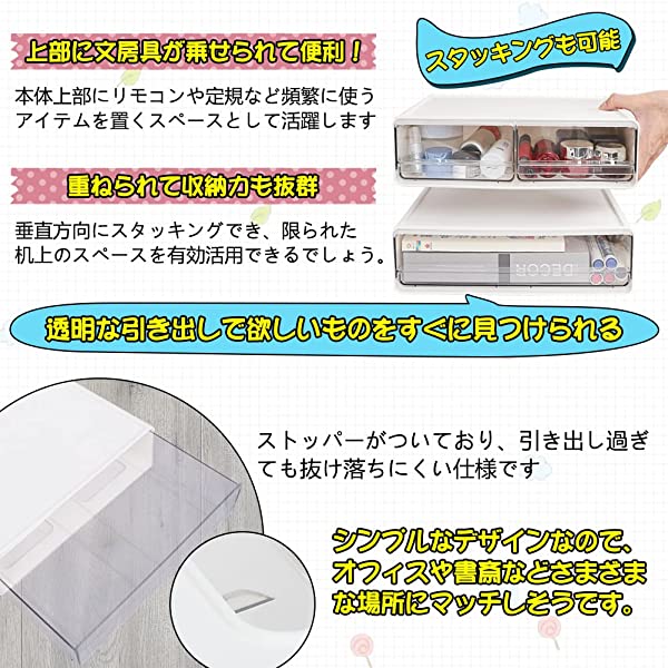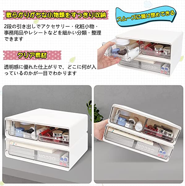 【自由な組み合わせ】サイズ:24 17 8.8cm(単品サイズ)/3個セット。積み重ね可能、重ねた状態で引出しを引いた時の本体の傾き・持ち上がりを防ぎます。文房具、事務用品、化粧品、小物などをすっきり収納でき、2段のデザイナで自由な組み合わせが可能です。