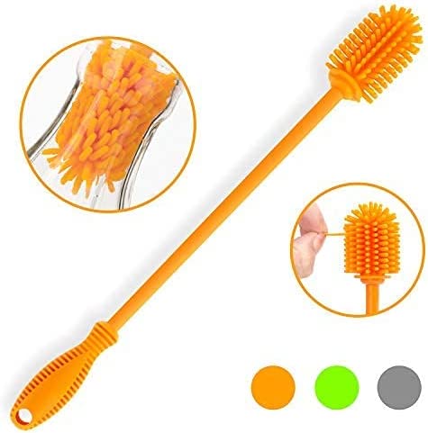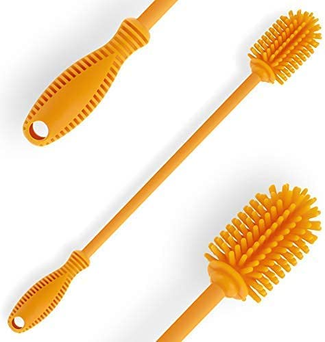 長柄 シリコン製 瓶ブラシ ボトルブラシ シリコン ブラシ 30.5?p 水筒ブラシ ハイドロフラスコ スポーツボトル 花瓶 魔法瓶 ガラス製品の洗浄する (1個-オレンジ)