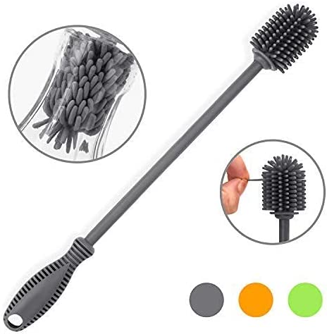 長柄 シリコン製 瓶ブラシ ボトルブラシ シリコン ブラシ 30.5?p 水筒ブラシ ハイドロフラスコ スポーツボトル 花瓶 魔法瓶 ガラス製品の洗浄する (1個-灰)