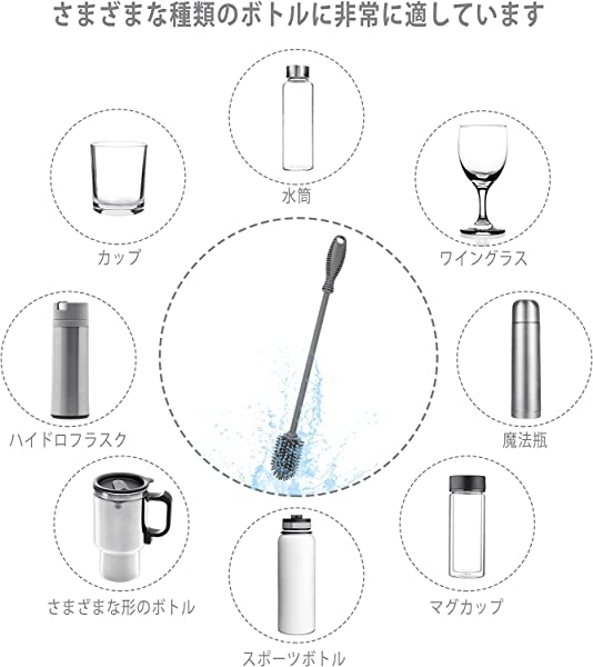 多目的クリーニングツール シリコンブラシを使用して、食器、スポーツボトル、カップ、水筒、ワイングラス、魔法瓶、台所用品などを衛生的で清潔に保ちます。