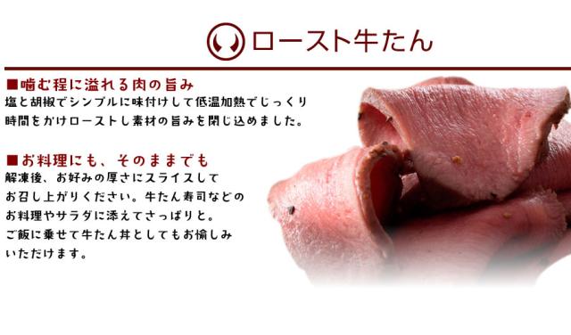 【ロースト牛たん】牛たん(輸入)、食塩、香辛料、ブドウ糖(原材料の一部に牛肉を含む)