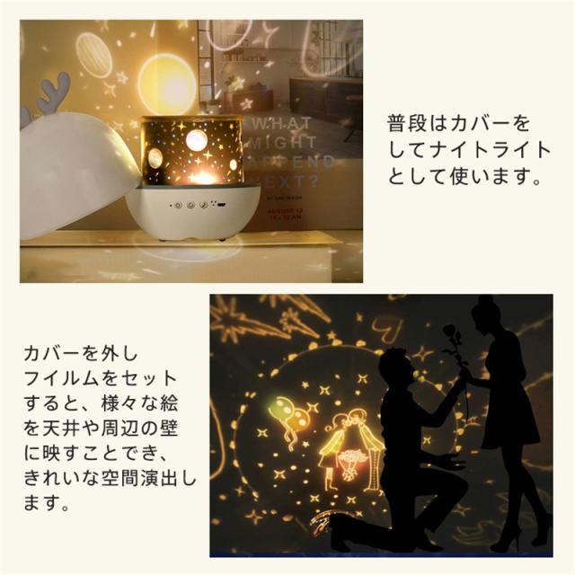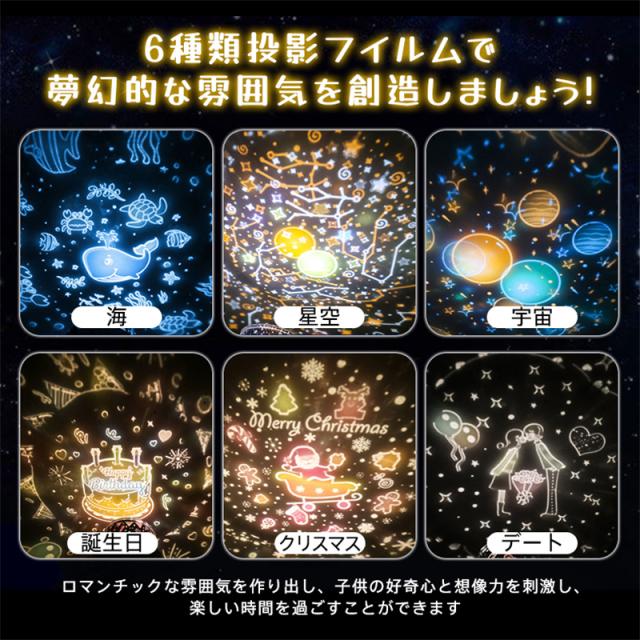 海の世界、宇宙、お誕生日祝い、星空とクリスマスの6種類映画フィルムが付属、シーンによって雰囲気を作りだす