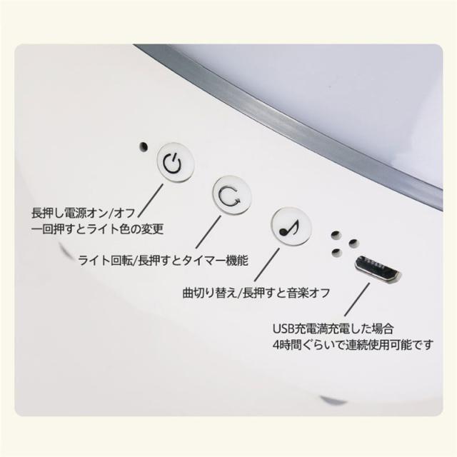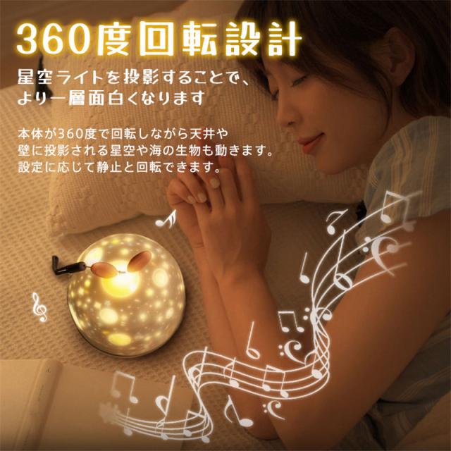 回転ボタンを押すと、本体が360度で回転しながら天井や壁に投影される星空や海の生物も動く