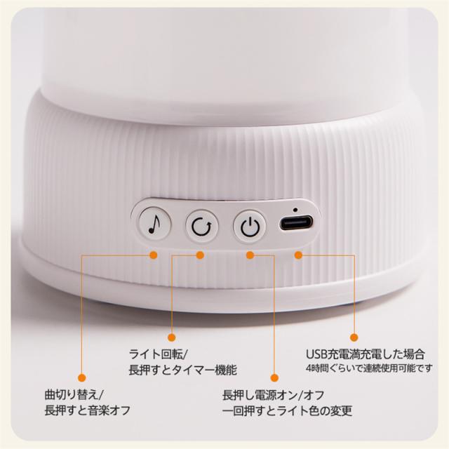 回転ボタンを押すと、本体が360度で回転しながら天井や壁に投影される星空や海の生物も動く