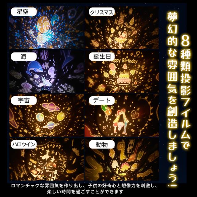 海の世界、宇宙、お誕生日祝い、星空とクリスマスの8種類映画フィルムが付属、シーンによって雰囲気を作りだす