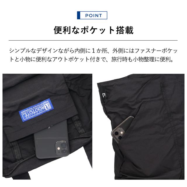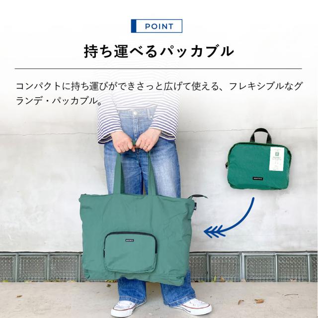旅をフレキシブルにするROOTOTEのパッカブルシリーズ。コンパクトに持ち運びができさっと広げて使える、フレキシブルなグランデ・パッカブル。荷物が増えても、身軽に旅を楽しめるように、セカンドバッグとしてもピッタリなアイテムです。軽量で撥水加工が施されているので、急な悪天候でも安心して使え、シンプルなデザインなので、年齢や男女問わず使用できます。