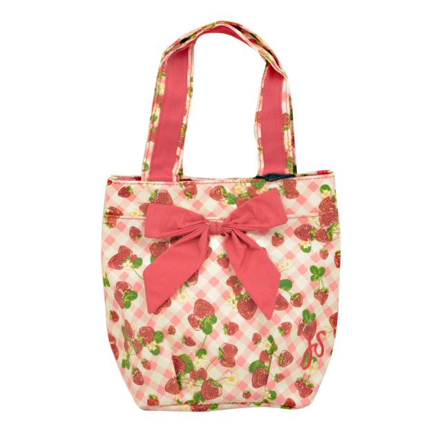 商品名:ジェシースティール Jessie Steele バッグ リボン付 ランチバッグ トートバッグ ミニバッグ 811-js-193 STRAWBERRY GINGHAM ストロベリーギンガム ピンク+レッド+いちご柄ギンガムチェック