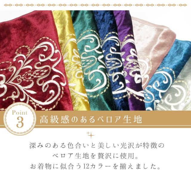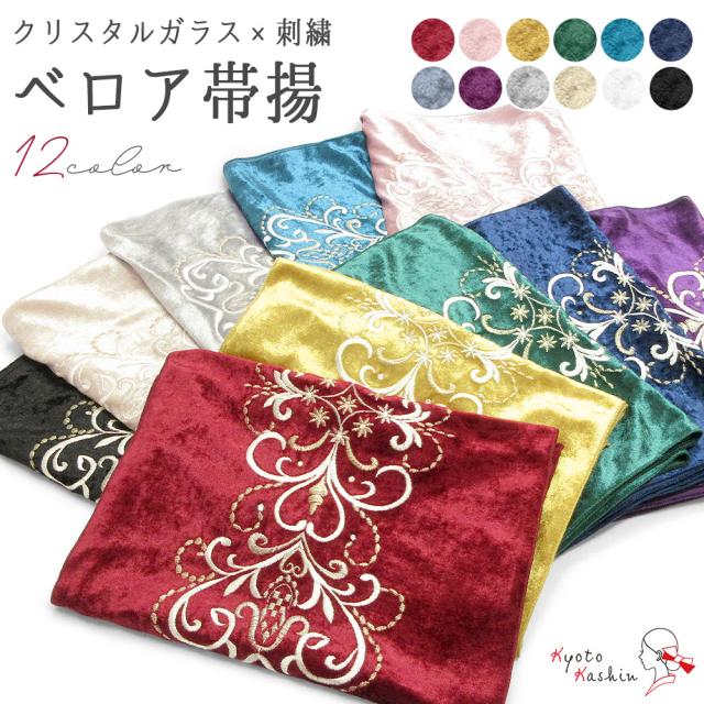 【1枚までメール便送料無料】帯揚げ おびあげ 振袖 成人式 日本製 全12色 ベロア 刺繍 クリスタル ラインストーン アンティーク くすみ カラー 赤 黄 緑 青 水色 紫 黒 白 金 銀 ベージュ ピンク 和装小物 着付け小物 ママ振り 前撮り 袴 結婚式 おしゃれ 可愛い