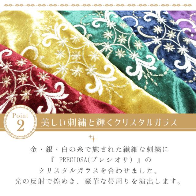 美しい艶と光沢に、深みのある色合いのベロアに豪華な刺繍を施しました。