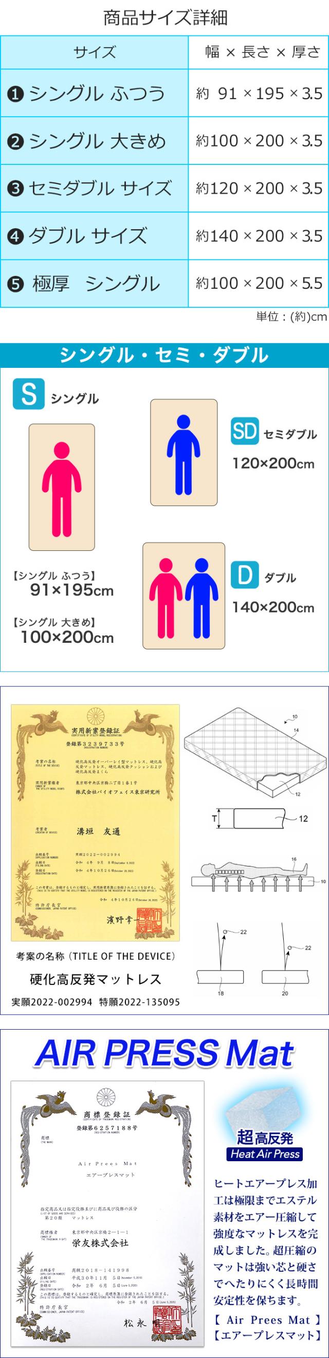 日本製 マットレス シングル 55FRR 極厚 高反発 エアープレス フィット マット 高反発 固反発 三つ折り 収納 オーバーレイ マット 高反発 固め OP バランスマット 腰対策 【バランス】【腰サポート】厚さ約 5.5cm 国産 国産