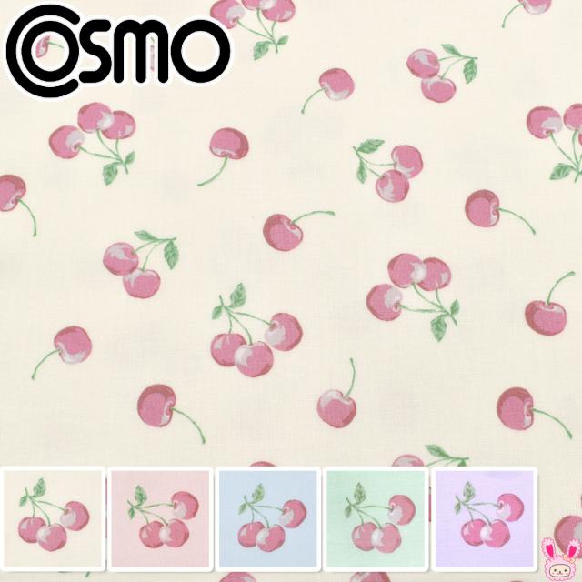 くすみカラーのさくらんぼ シーチング生地 AP51101-1 コスモ (50cm以上10cm単位切り売り) [在庫限り]