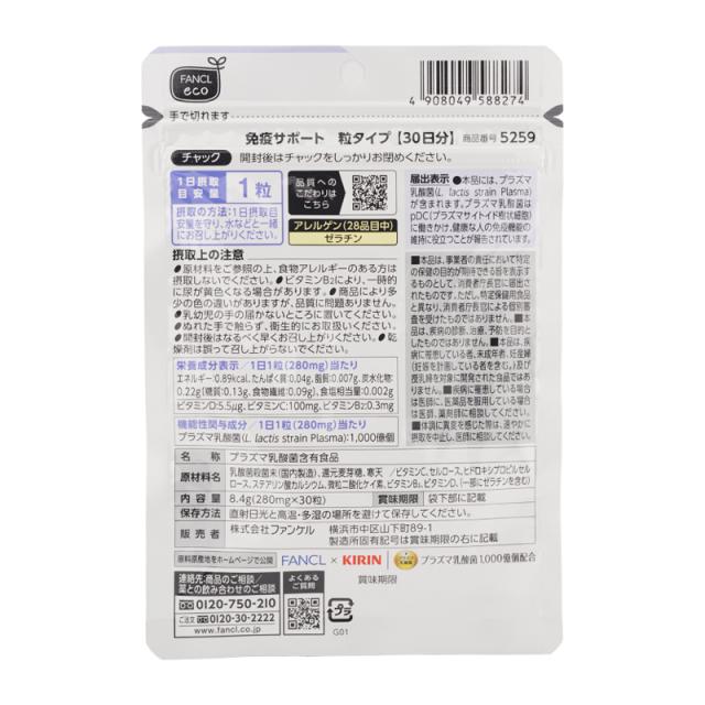 FANCL ファンケル 免疫サポート 粒タイプ 30日分 ビタミンB ビタミンC ビタミンD プラズマ乳酸菌 健康食品 サプリメント[ギフトラッピング対応]