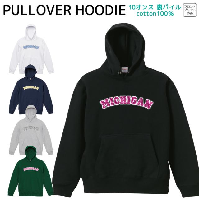 パーカー メンズ レディース ミシガン 文字 長袖 コットン100% 綿100% S M L XL 10オンス トレーナー スウェット フード付き zakka045-0022