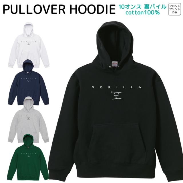パーカー メンズ レディース ゴリラ gorilla 顔 動物 長袖 コットン100% 綿100% S M L XL 10オンス トレーナー スウェット フード付き zakka045-0028