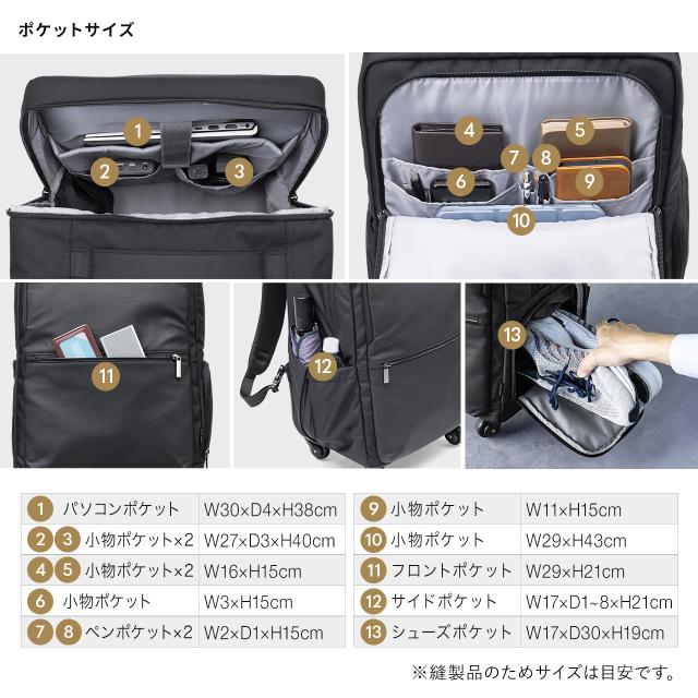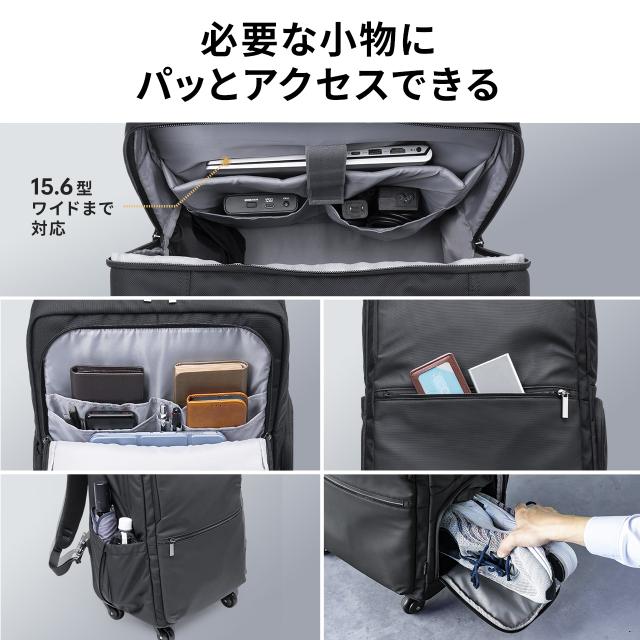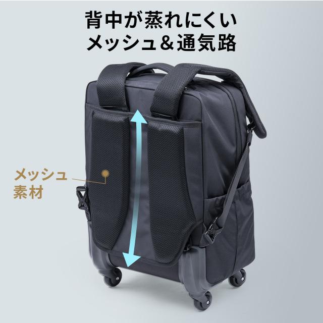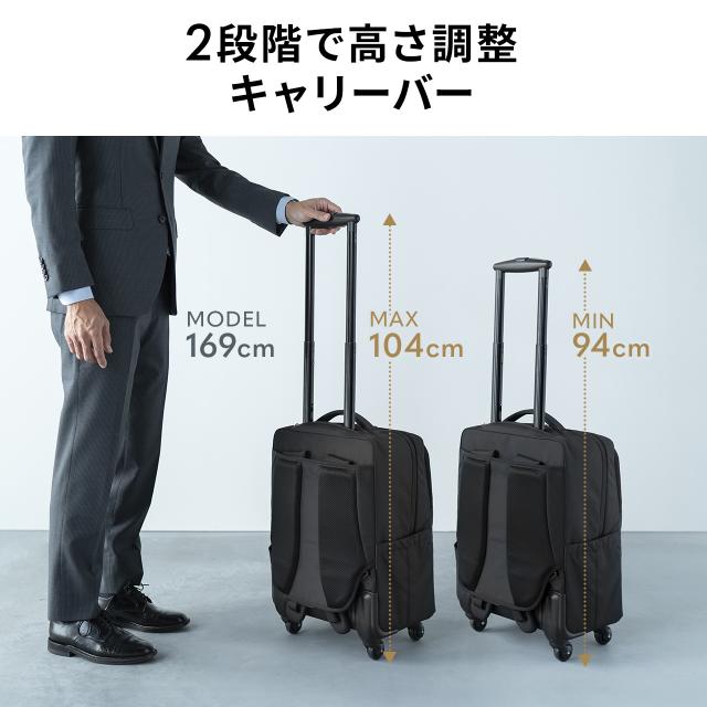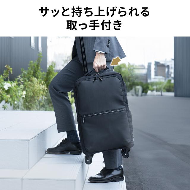 キャリーリュック キャリーバッグ 4輪 容量35L 2WAY ビジネスリュック 機内持ち込み スーツケース 撥水 トロリー 2泊3日 旅行 出張 防災 ブラック[200-BAGCR013BK]