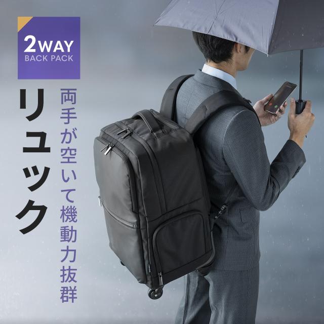 ●キャリーバッグや、リュックサックとして2WAYで使用できるキャリーリュックです。●スーツケースのような4輪仕様で、2輪と違い体の横に置いて走行できるので周囲の邪魔になりません。