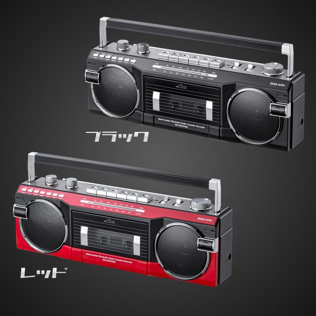 Bluetooth搭載 多機能ラジカセ & カセット変換 デジタル保存 USBメモリ / SDカード MP3プレーヤー 乾電池 AC電源 AM FM ラジオ ブラック レッド[400-MEDI050]