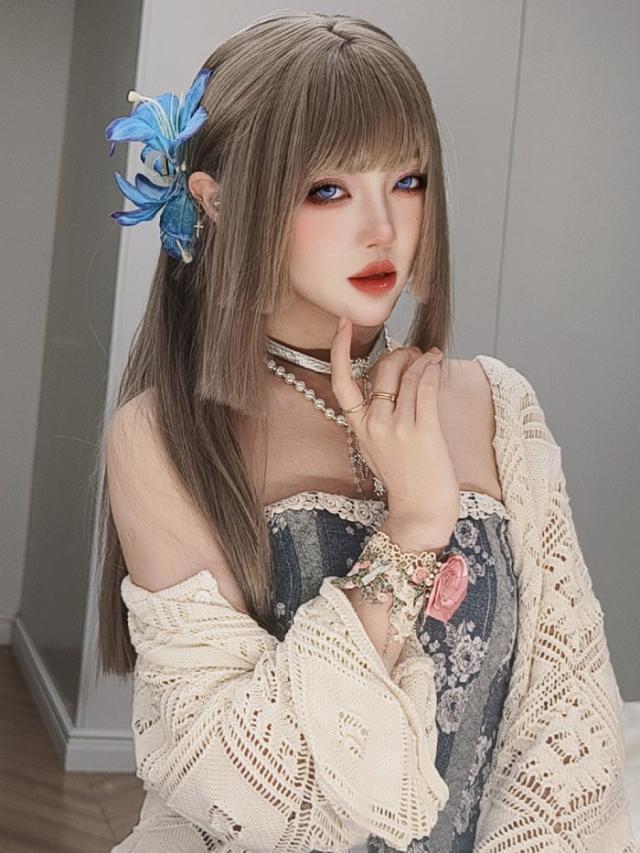 姫カット 中世の貴族風 ストレート ブラウン色 茶髪 フルウィッグ かつら 女性 長髪 ロングウィッグ ロングヘア ロリータ lolita 前髪あり 自然 可愛い wig コスプレ 耐熱ウィッグ 小顔効果 コスチューム 仮装 文化祭 学園祭 演劇 舞台 イベント 変装 女装