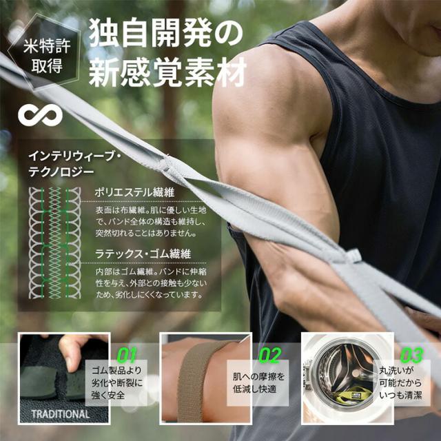 ![]() POINT1:長さ・負荷を調整可能なマルチループ構造 複数のループが繋がっている構造です。ループを持つ位置によって、トレーニング負荷を簡単に調整できます。 長さの調整も簡単なので、アームカールなどの片手で行う種目やロウイングやチェストプレスなど大筋群を使った動作を行うトレーニングもできます! 筋トレ愛好者の方が良く行う「ドロップセット」のトレーニング方法も、1本のマルチバンドで行うことができます。 ![]() POINT2:掴みやすい、引っ掛けやすいループ形状 特徴的なループ形状のメリットは手やつま先、踵を引っ掛けやすいこと。ストレッチやヨガポーズの補助に最適です。 女性に人気の足トレを行う場合、通常のトレーニングバンドではすぐ外れてしまう、といったようなストレスがなく快適にトレーニングを行えます。 一般のストレッチバンドと違って、伸縮性があるので、トレーニング効果もあります。 これまでタオルを使って補助していたポーズもVRTXバンドでアップグレードしましょう! ![]() POINT3:使用感にこだわり、縫い方を工夫 ループ同士がつながっていると部分の縫合に特殊な縫い方(クロスさせる形式)を採用しています。 これによって、たとえ縫合部を持つときでも重心に対してバランスよく握ることができ、違和感や不快感なくトレーニングを行うことができます。 グリップ部分でも素材が柔らかいので、どんな人でも握りやすくなっています。そのため子供やご年配の方でも非常に使いやすくなっています。 グリップの幅が簡単に調整可能なので、小柄な方でも合った負荷をしっかりかけられます。 ![]() |
