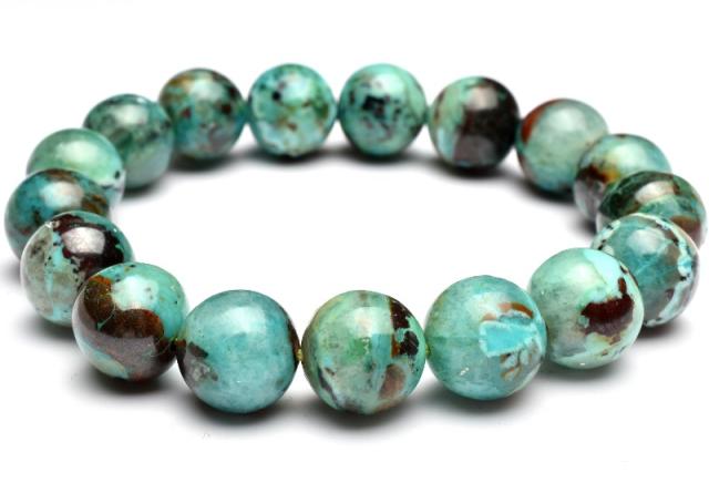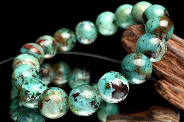 【1点物】ペルー産◇希少マーブル クリソコラシリカ 12mm ブレスレット 【ネコポス送料無料】_L9910