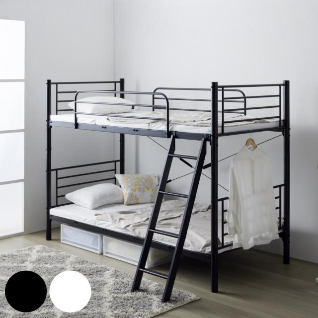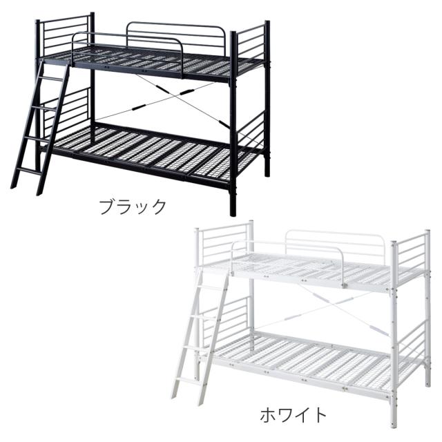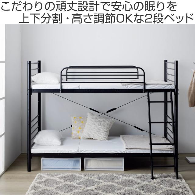 2段ベッド 耐荷重300kg 分離 横連結 シングル&キング対応 スチールフレーム ( 二段ベッド 大人用 子供用 パイプベッド 上下分割 高耐荷重 高さ調節 寝具 シングル キング ハシゴ ブラック ホワイト 頑丈 )