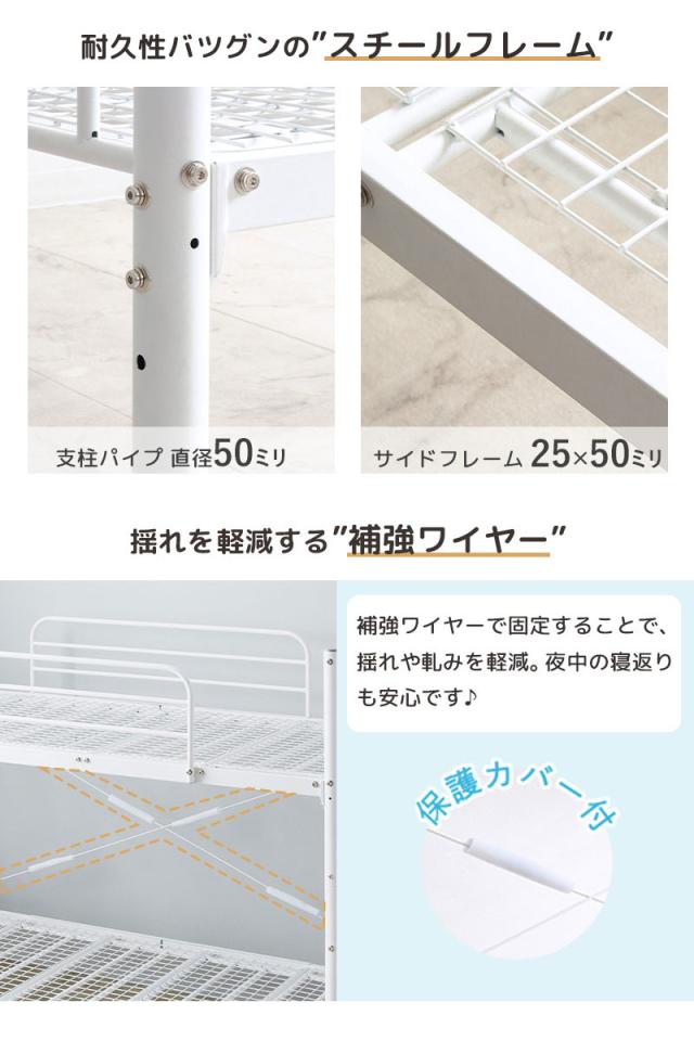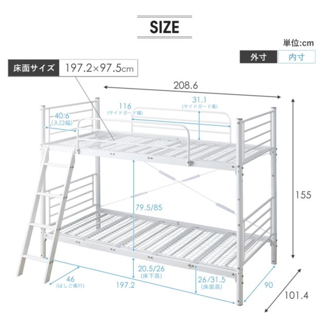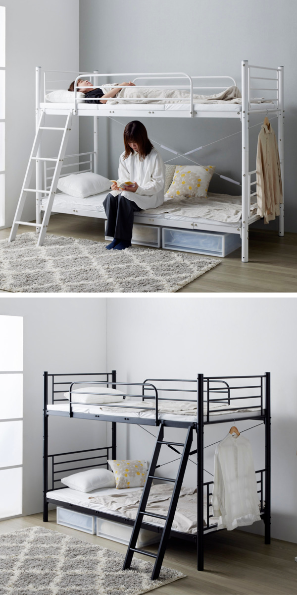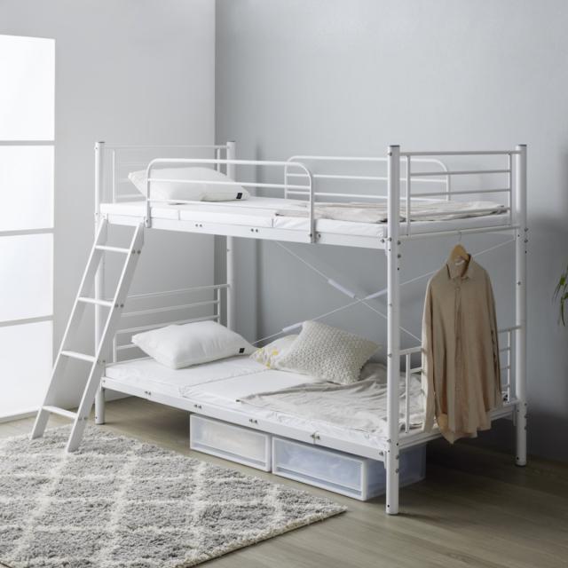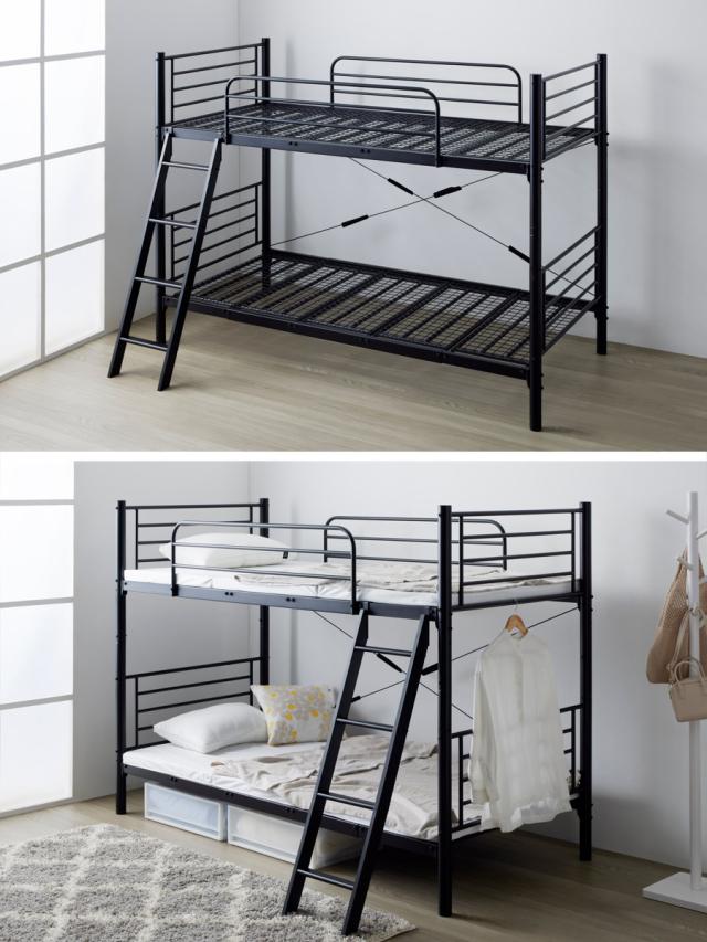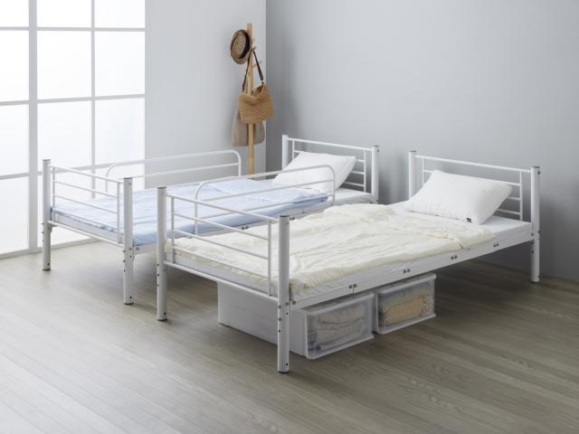 上下分割・高さ調節可能、頑丈設計の2段パイプベッド