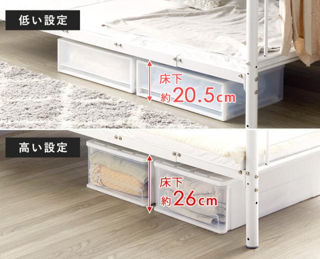 2段階で高さ調節ができる床下は、収納ケースなどを置くスペースとして有効活用できます。お布団や季節用品、衣類などの収納にぴったりです。