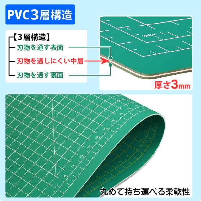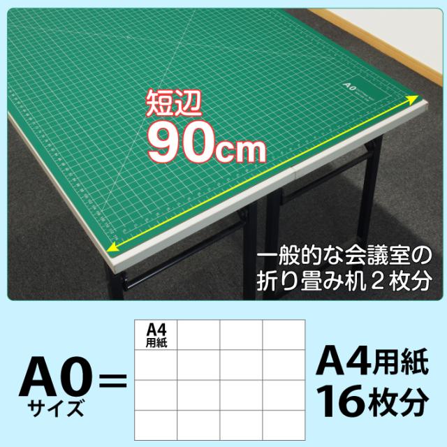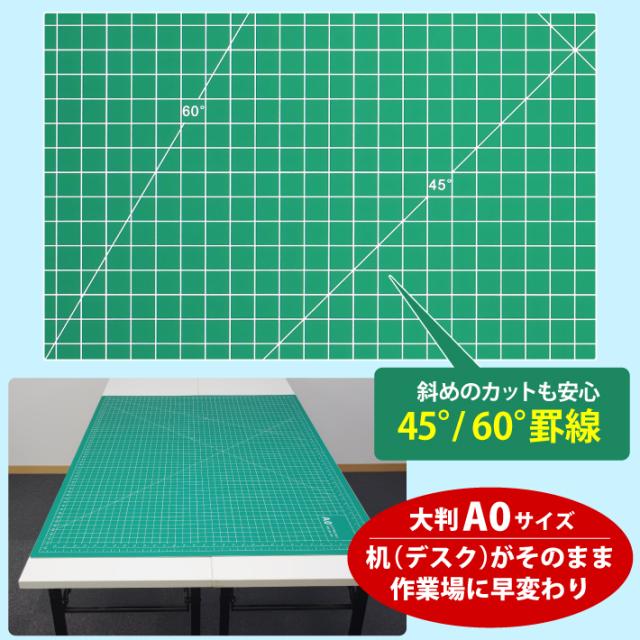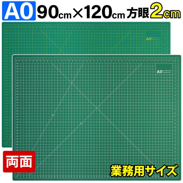 カッティングマット A0 サイズ 90cm x 120cm x 3mm 2cm方眼 特大 両面メモリ 業務用 工作 カッターマット大判 デスクマット 緑 グリーン 両面目盛り 切り出し
